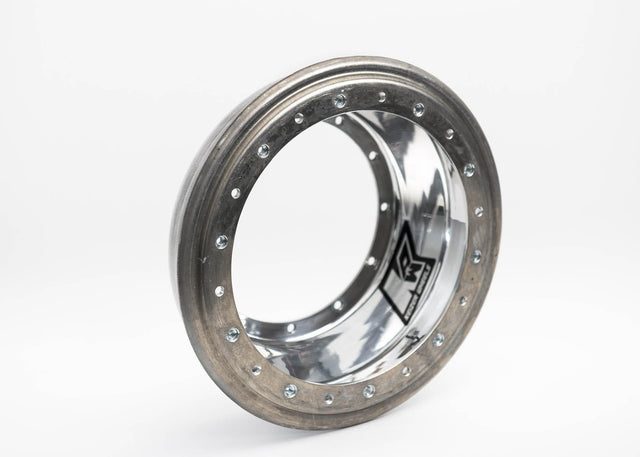 This wheel half does not come with a beadlock ring. It is the wheel half only. The beadlock mounting ring on this wheel half is machined billet aluminum welded onto the spun aluminum half.