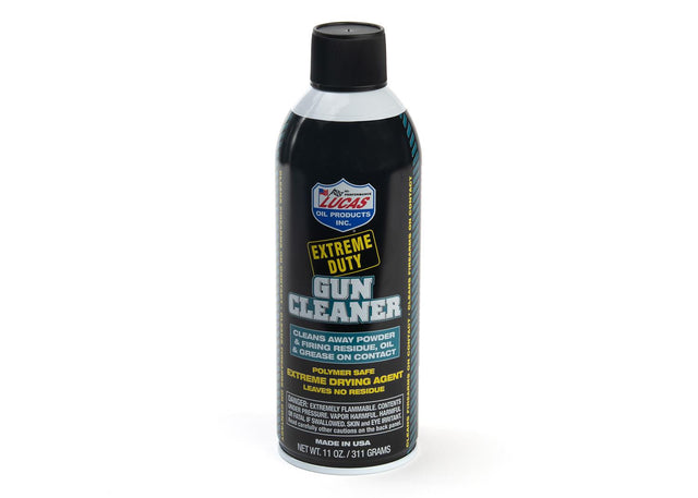 Lucas Oil Extreme Duty Contact Cleaner is the exact same product as their highly rated Gun Cleaner, hence the labeling. Yes, you can also use it to clean your gun. 11 ounce spray can.